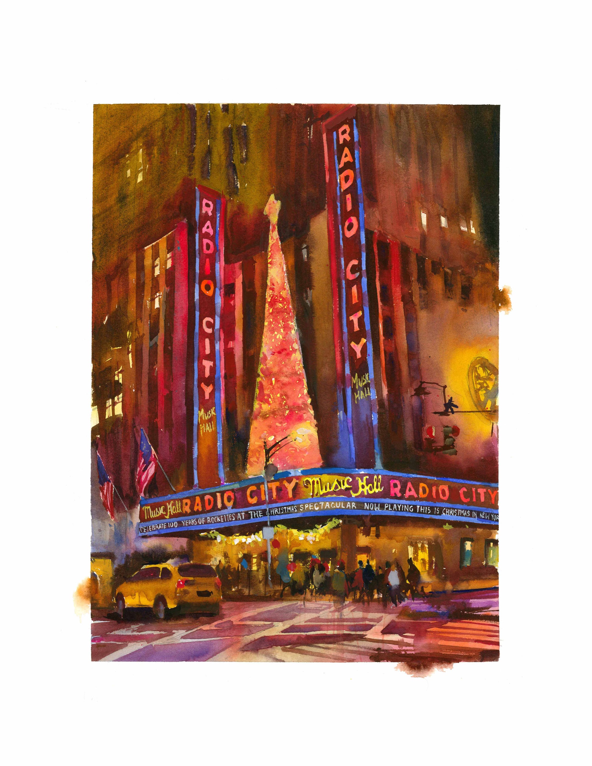 NEW YORK CITY - CHRISTMAS AT RADIO CITY - WATERCOLOR PRINT (LIMITED EDITION)